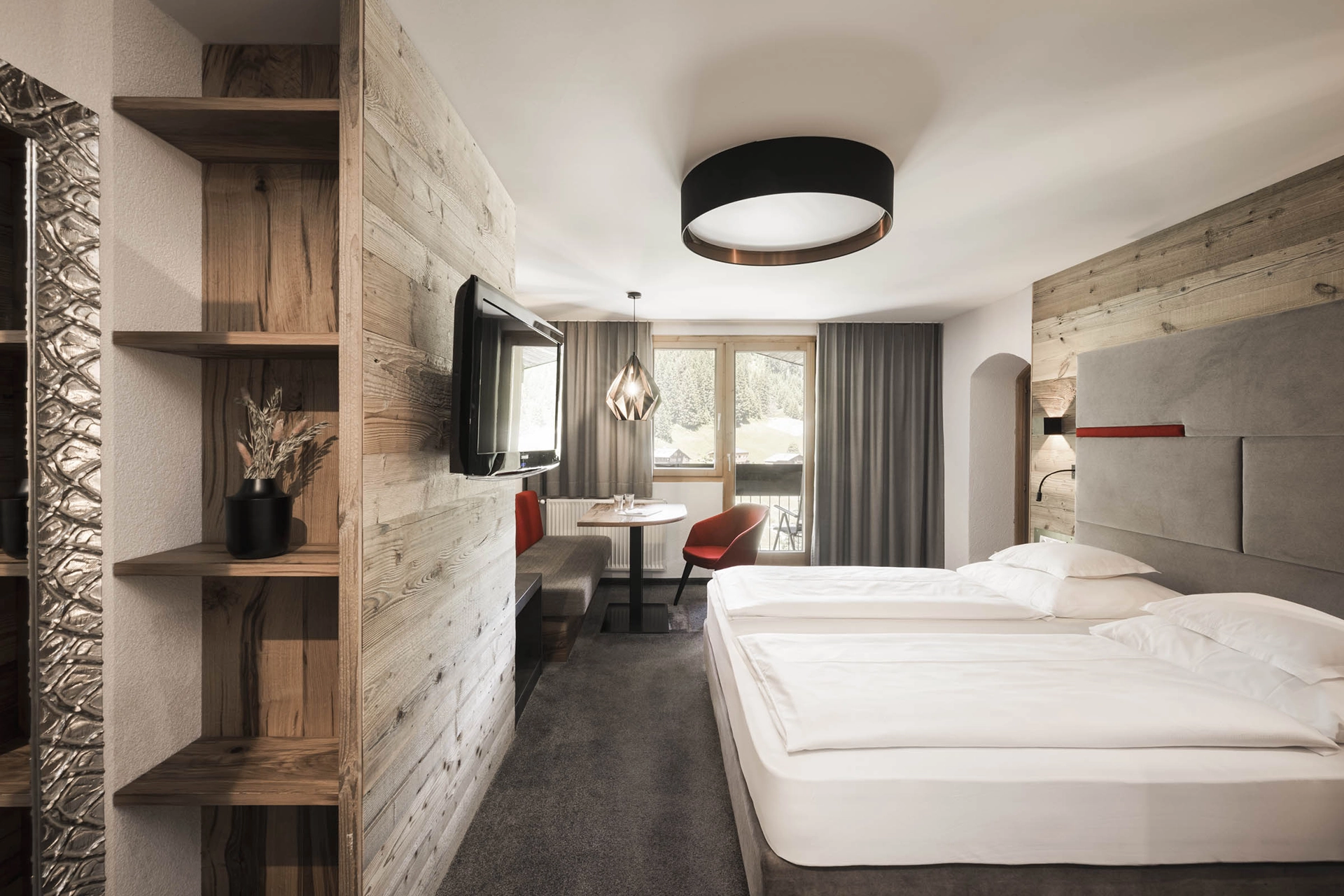 Mehr Licht, mehr Luft, mehr Freiheit – für die ganze Familie: mit zwei getrennten Schlafzimmern und einem großzügigen Sitzbereich. Vom Balkon blickst du auf sattgrüne Wälder und die wunderschöne Alpe Rongg.