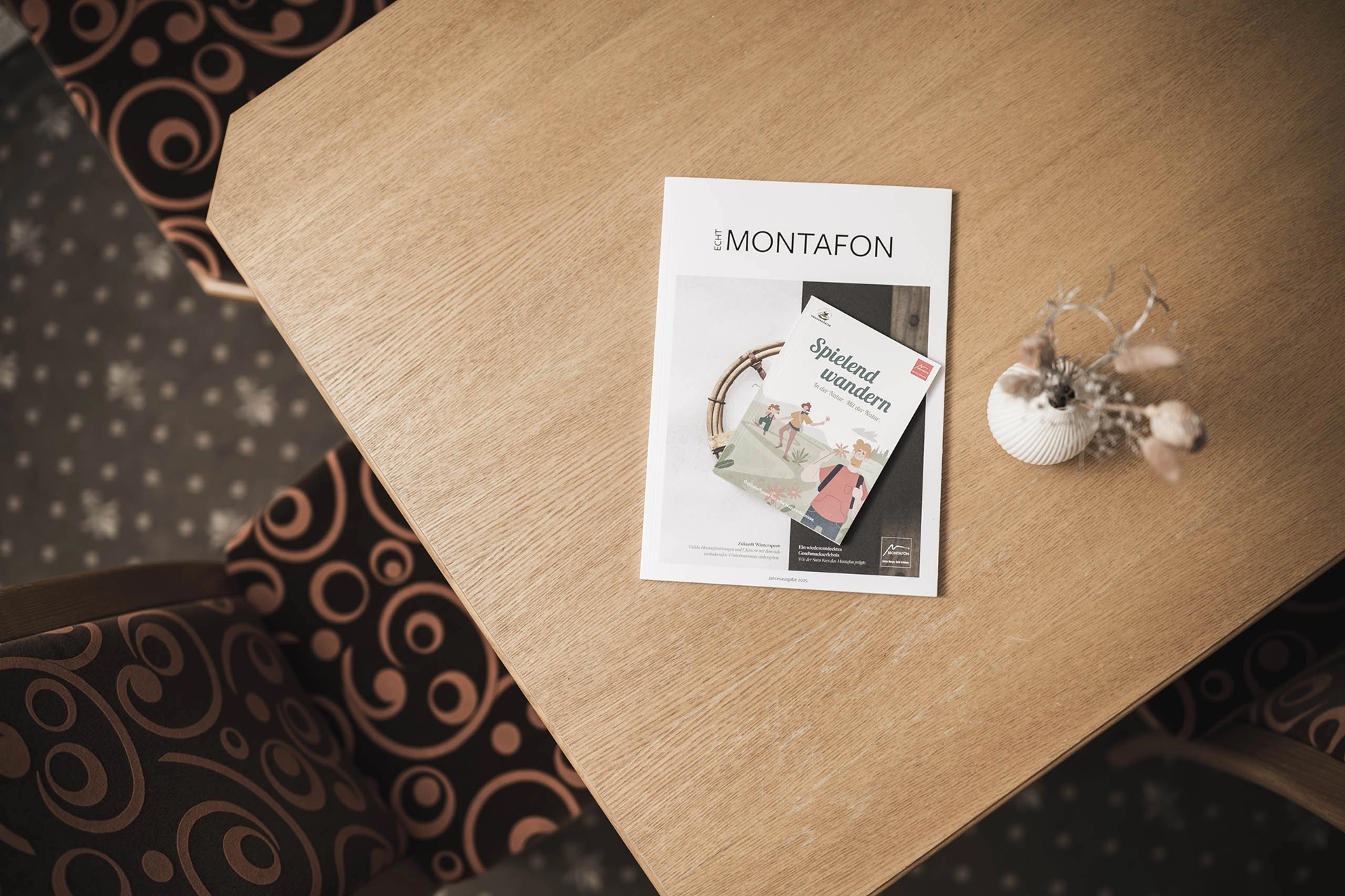 Eine Hommage an die Wunder der Natur: warmes Altholz, Filz und Eichenholzfußböden. Und das Beste: getrennte Schlafzimmer. Während die Kinder im gemütlichen Etagenbett jauchzen, genießt du die Ruhe und den Ausblick auf die archaische Madrisa.