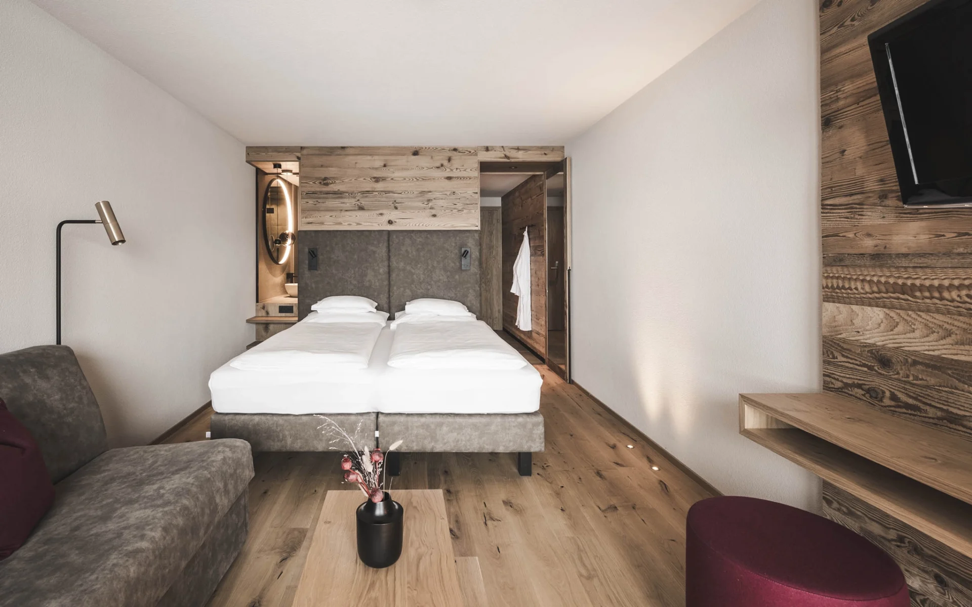 Warmes Altholz, Eichenholzfußböden, dezentes Licht und ein durchdachtes Raumkonzept. In der Schafberg-Suite wird dein Herz höherschlagen und deine Kinder werden vor Freude jauchzen – wartet doch ein separates Kinderzimmer mit gemütlichem Etagenbett.